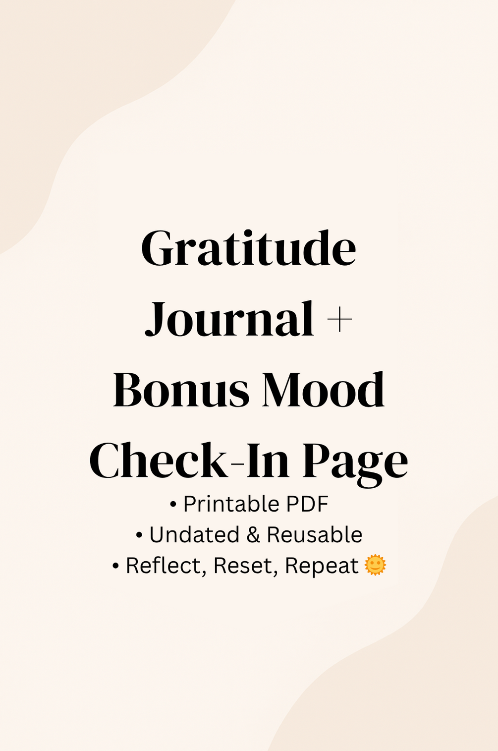 A calming, printable Gratitude Journal with a bonus Mood Check-In page to help you reflect, reset, and build emotional wellnessâevery single day.