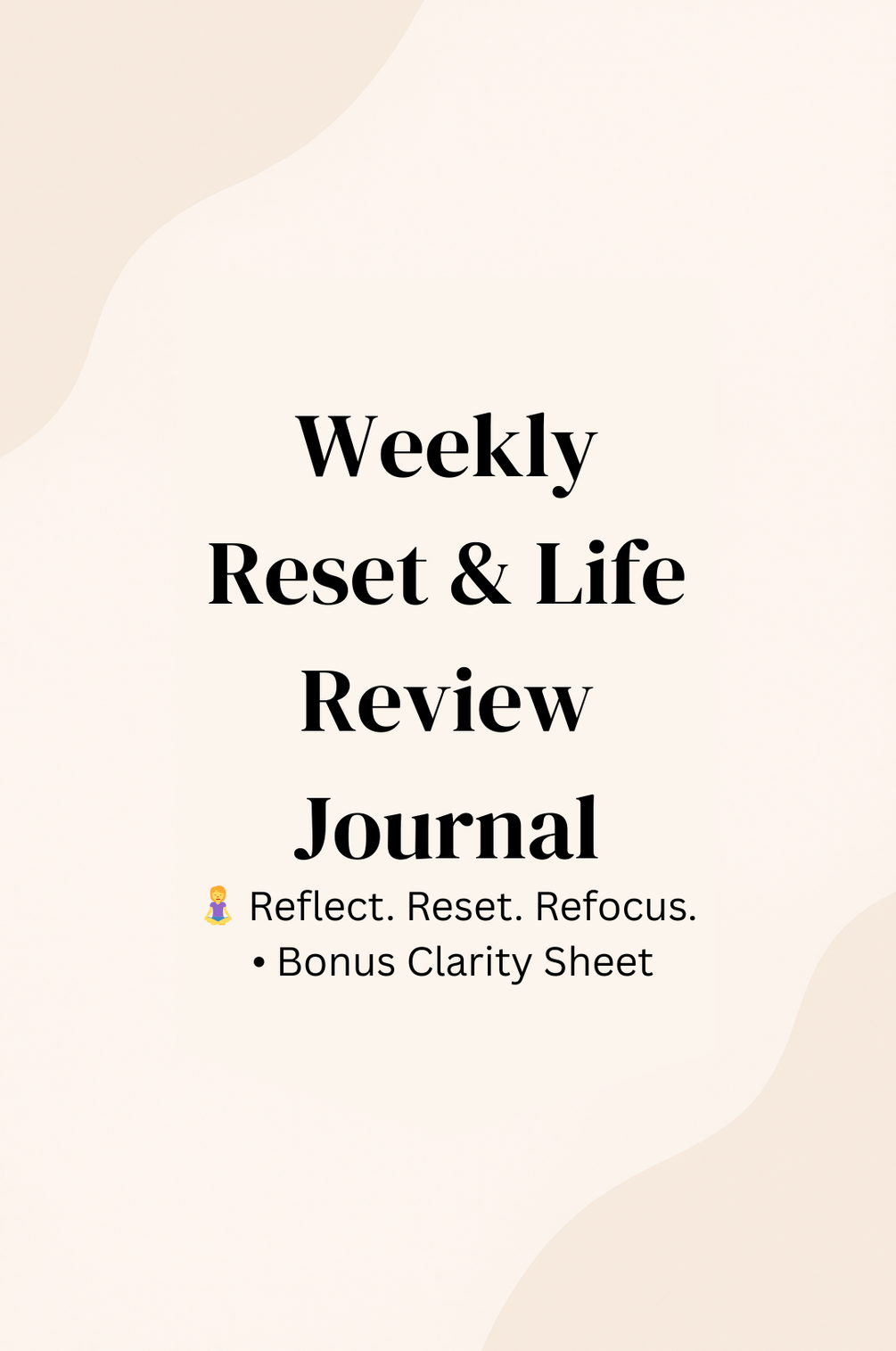 A guided weekly reset and self-reflection planner to help you slow down, review your life, and reset your focus. Includes bonus clarity worksheet to gain mental clarity fast. Perfect for busy minds.